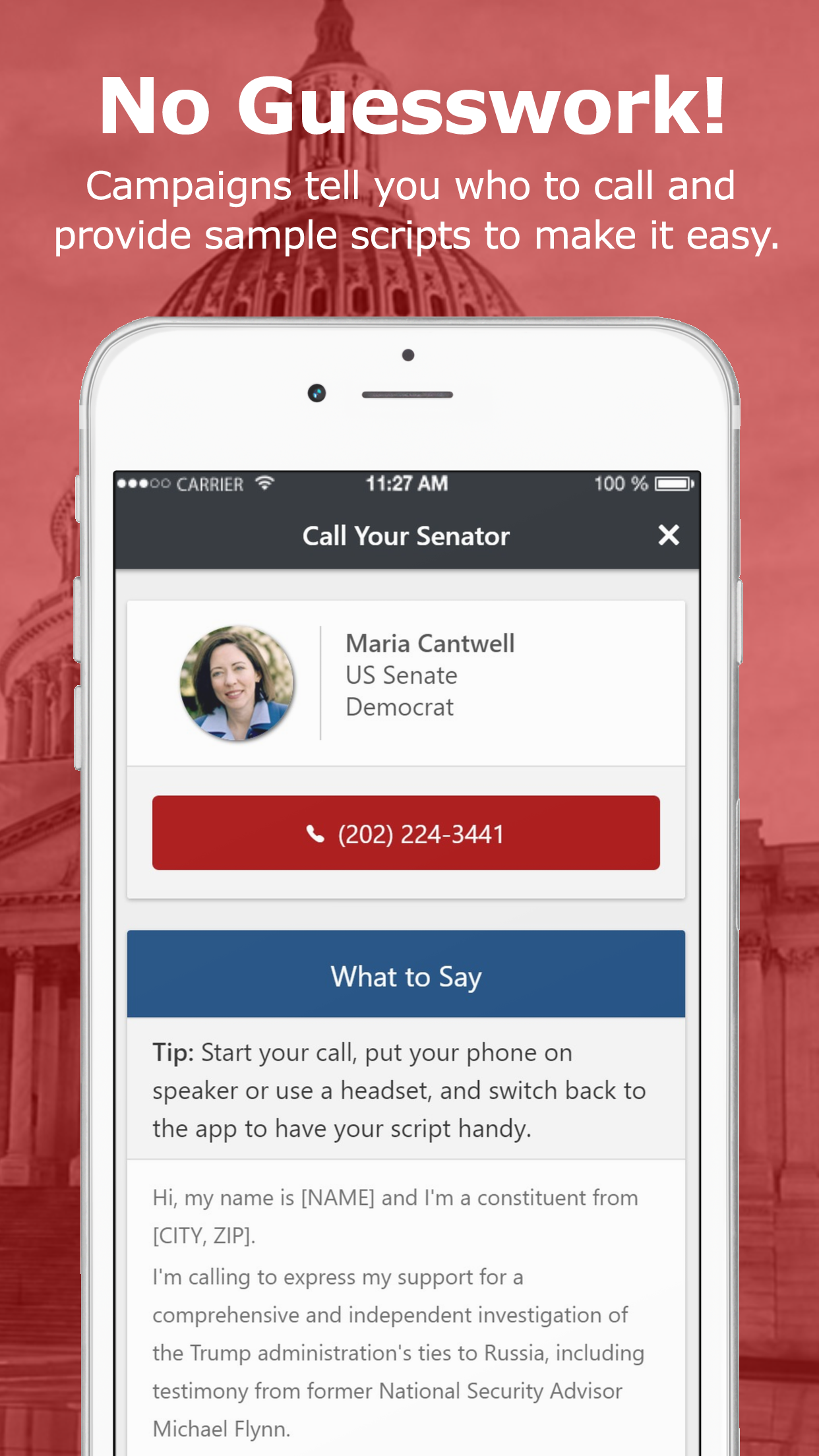 Alongside other activism related apps and apps dedicated to women's issues, Capitol Call was a recommended download.