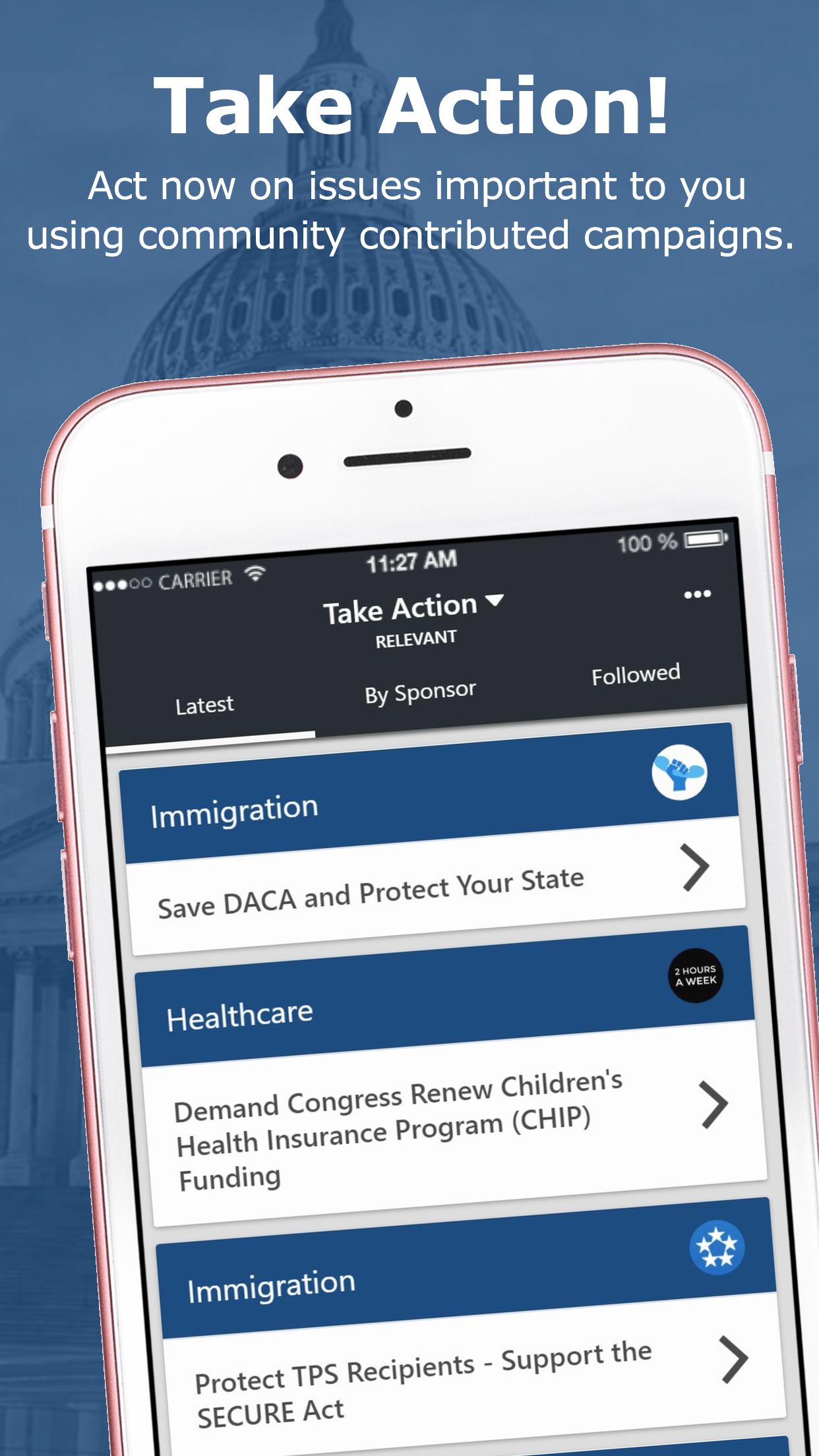Introduced the Vote tab - with voter registration and verification powered by Vote.org and a new midterm election countdown timer. Also added were political preference filters for the Take Action tab and a new slick onboarding experience.